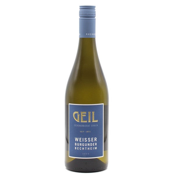 Oekonomierat Johann Geil, Weisser Burgunder trocken, Bechtheim; Rheinhessen. Der Weissburgunder vom Weingut Oekonomierat Johann Geil duftet nach reifen Birnen. Im Gaumen ausgewogene, geschmeidige Fülle. Optimale Reife zum Zeitpunkt der Lese und eine besonders schonende, langsame Gärphase im Edelstahltank und danach Ausbau in gebrauchten grossen Barriques ergeben diesen tollen Weisswein, unser Besteller bei den Deutschen Weinen. Macht beim Apero eine sehr gute Figur und passt auch zu Spargel- und Fischgerichten. 13% Alkohol